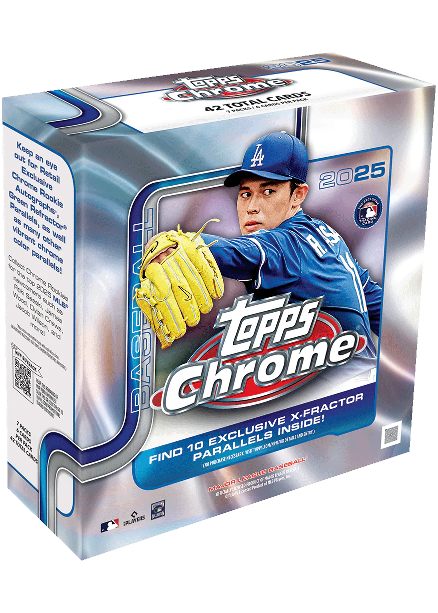 2025 Topps Chrome Baseball has it all! Chase a fun mix of jaw-dropping inserts and exciting chrome parallels, as well as on-card autos of some of the most electrifying young talent in baseball history!